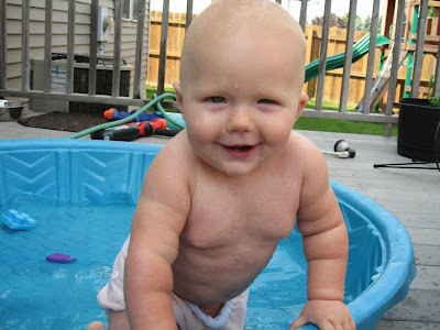 It's been sooooo hot here, and today I let Maryam go out in our little plastic pool outside. She had so much fun, until she tried to climb out and tipped out before I could grab her. Now she has a little knot in her head, and I feel horrible. She screamed for about 30 seconds, then wanted to go back in the pool.